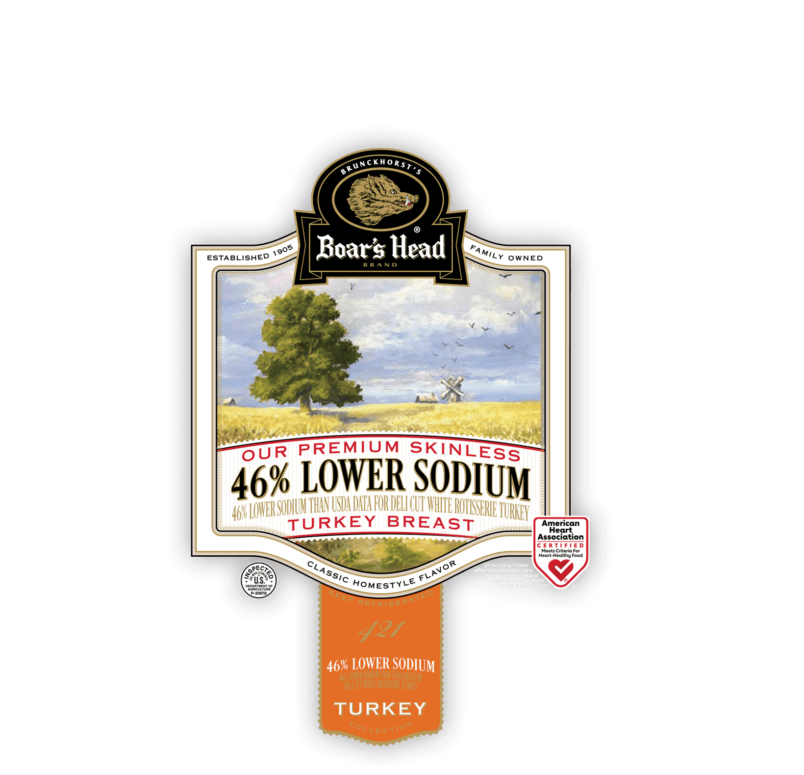 Boar’s Head® 46% Lower Sodium, una versión mejorada de un sabor clásico casero, es saludable para el corazón, sin conservantes y con menos sodio.