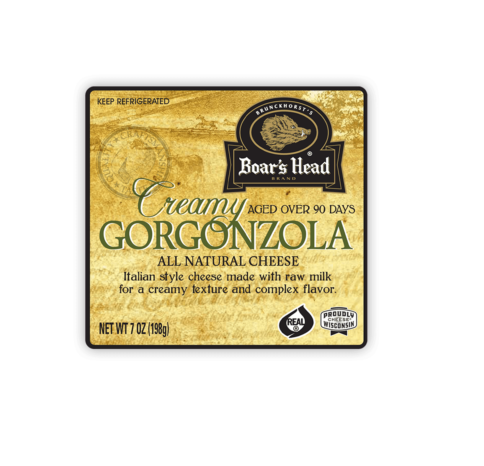 Inspirado en las tradiciones culinarias de la región italiana de Lombardía, este queso cremoso y argio que se elabora en Wisconsin tiene notas dulces y saladas que intensifican su complejidad. El queso gorgonzola cremoso deBoar's Head® se envejece durante al menos 90 días para producir delicadas vetas color azul verdoso.