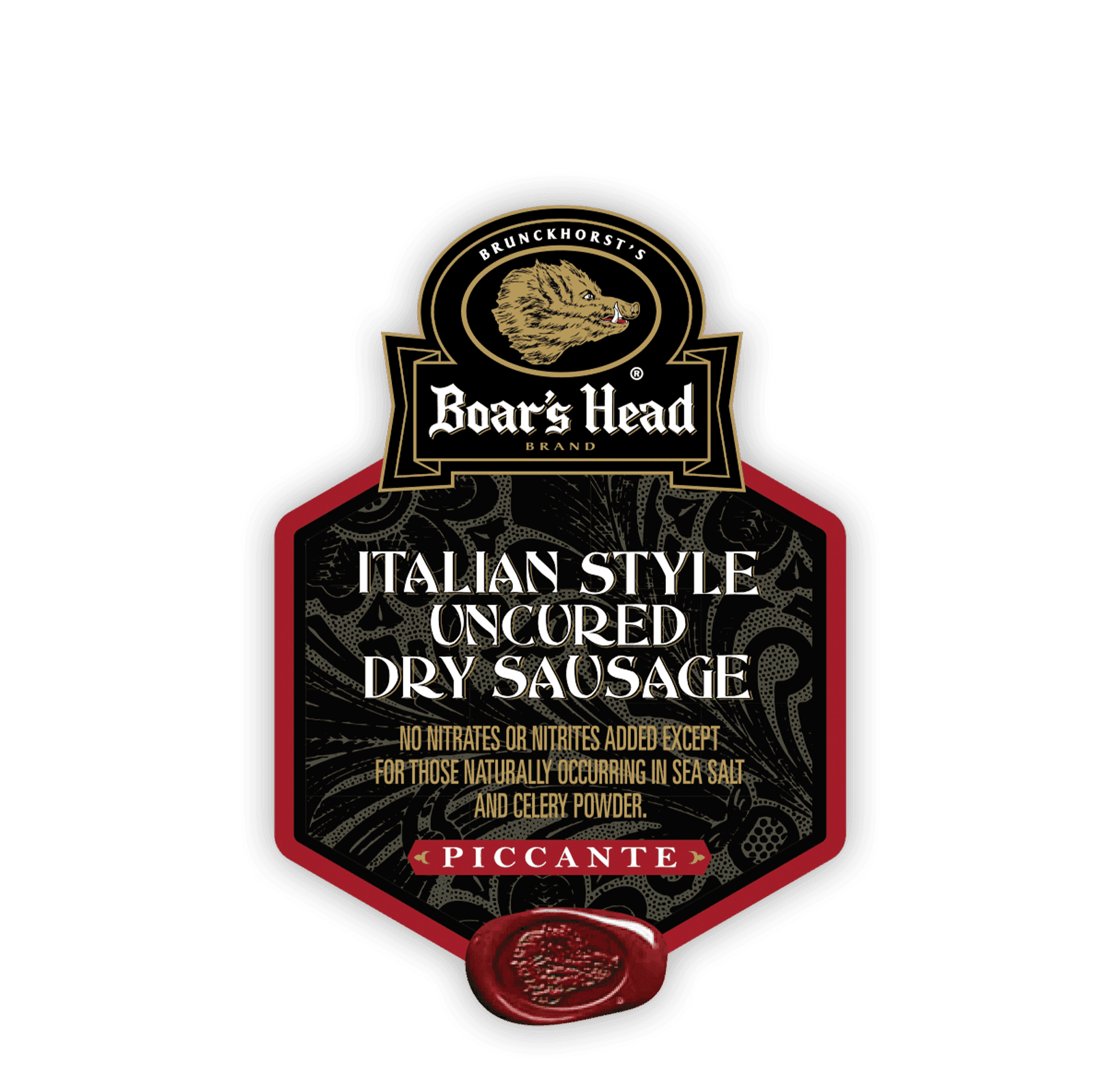 Una mezcla de cortes de cerdo cortados a mano con sabrosos condimentos italianos y vino blanco. La salchicha Boar's Head Italian Style Uncured Dry Sausage Piccante se cura en seco y se madura de forma natural para obtener un sabor mediterráneo picante.