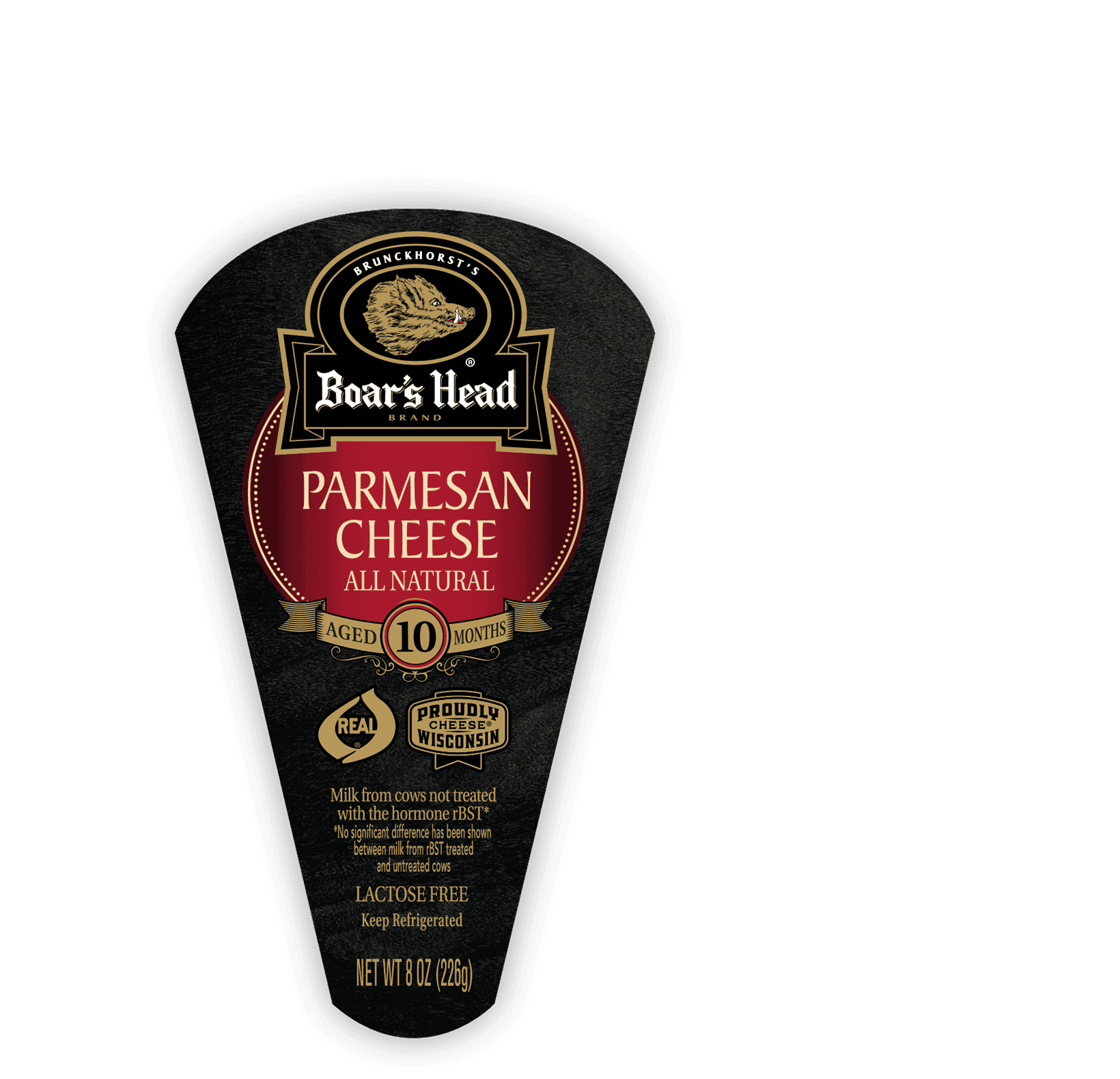 Boar’s Head Parmesan Cheesese cura en bodegas por 10 meses para crear un perfil de sabor a nueces, robusto, intenso, salado y dulce. Este queso completamente natural está hecho con leche de pequeñas granjas de lácteos en el corazón de Estados Unidos, se procesa mínimamente y no tiene ingredientes artificiales. Los maestros queseros inspeccionan y rotan los ciclos para asegurar la consistencia del proceso de curación. Nuestro irresistibleParmesan Cheesees versátil en aplicación y tiene una textura dura ideal para rallar, desmenuzar, o cortar en cubos.