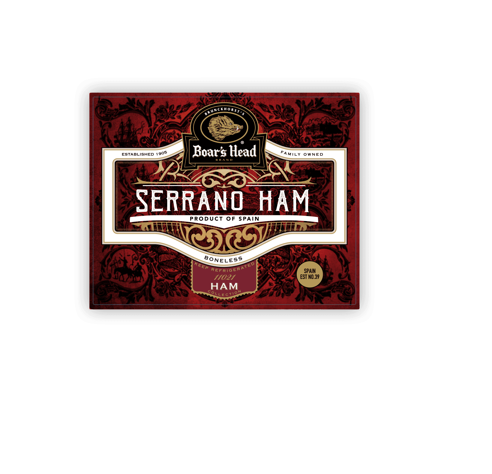 Truly the great Spanish ham, Boar's Head Serrano Ham is dry cured for at least 12 months in the rocky mountainous regions of Spain. This ham has a robust flavor and a firmer, drier texture.