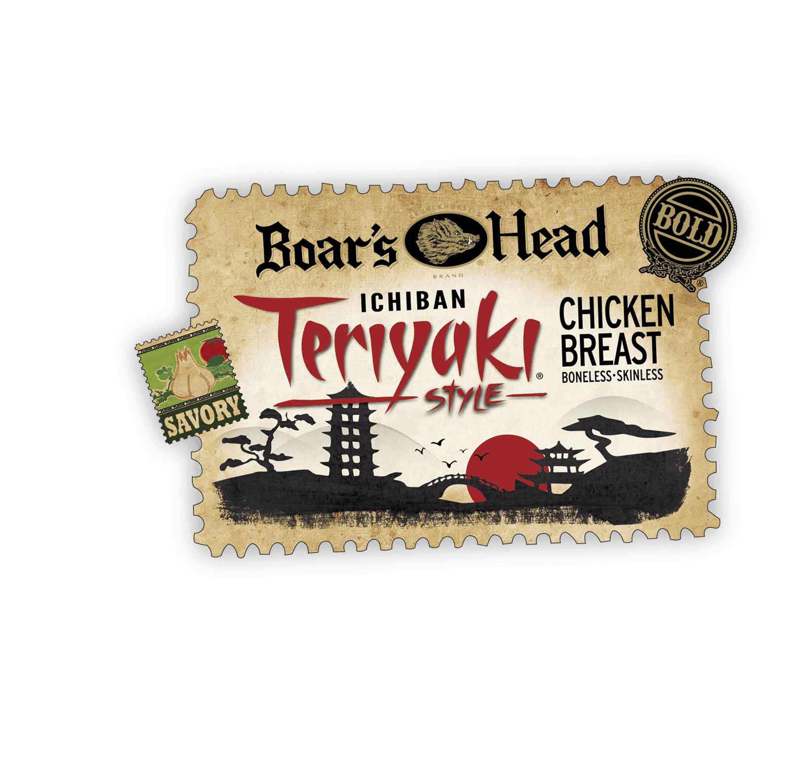 Bringing to mind the ancient teriyaki cooking style of Japanese master chefs, Boar's Head Bold® Ichiban Teriyaki® Style Chicken Breast is a true taste adventure. Coated with a savory teriyaki style glaze with distinct notes of ginger, garlic and a hint of brown sugar, each slice is bursting with Asian-inspired flavor.