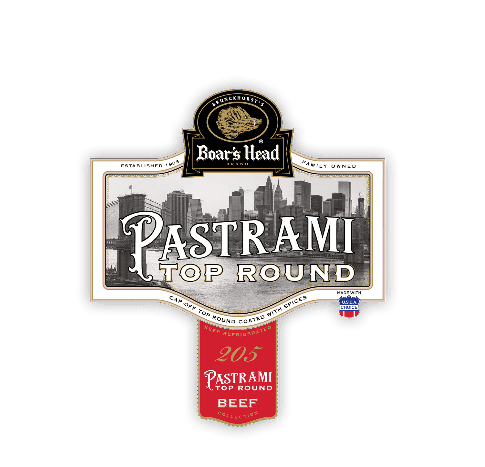 This hand-trimmed top round is rich and smoky and is generously coated with spices, then patiently smoked. Boar's Head® Top Round Pastrami is bursting with classic New York deli flavor.