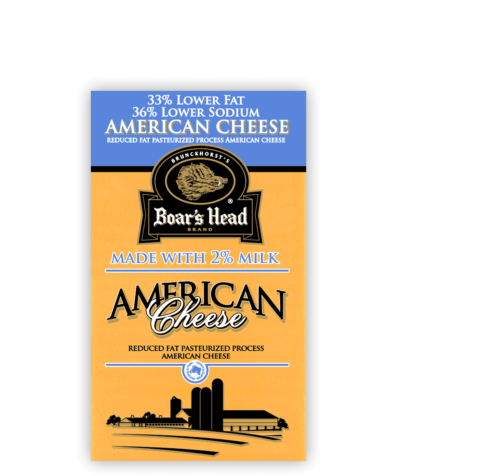 Crafted from a hand-selected blend of Cheddar cheeses, this all-American cheese has a smooth, creamy texture and pleasantly mild flavor. Boar’s Head® 33% Lower Fat & 36% Lower Sodium American Cheese - Yellow is a better for you version of a flavorful classic.