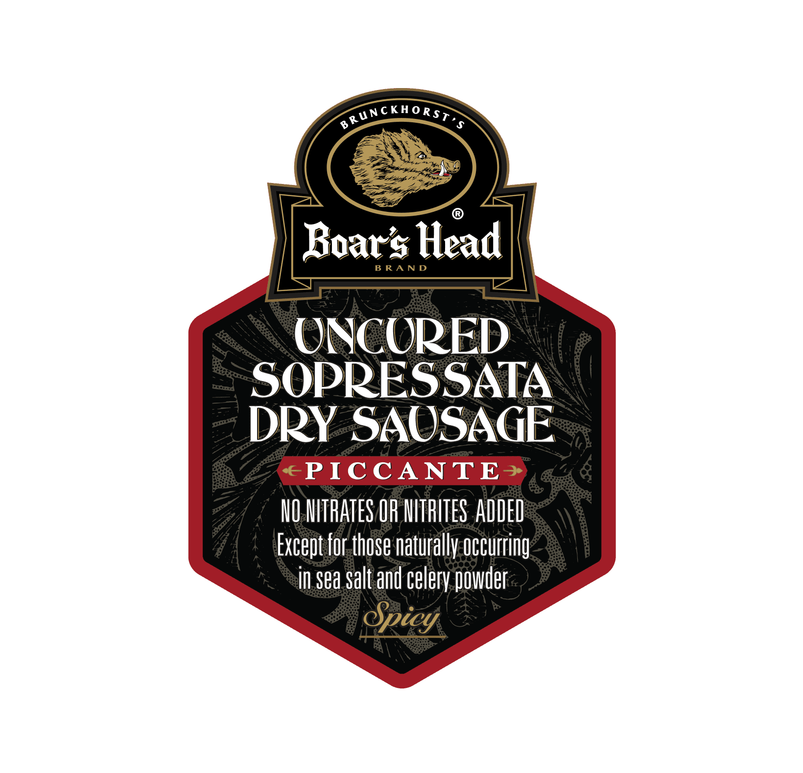 Boar’s Head® Sopressata is masterfully crafted with pork trimmed by hand then coarsely ground, seasoned with a traditional Roman spice blend, and dry cured. The Sopressata Piccante features a zesty spice blend for those who prefer a touch of heat. Boar’s Head® Sopressata is part of our Charcuterie collection which brings the essence of true Italian flavor to your local deli.