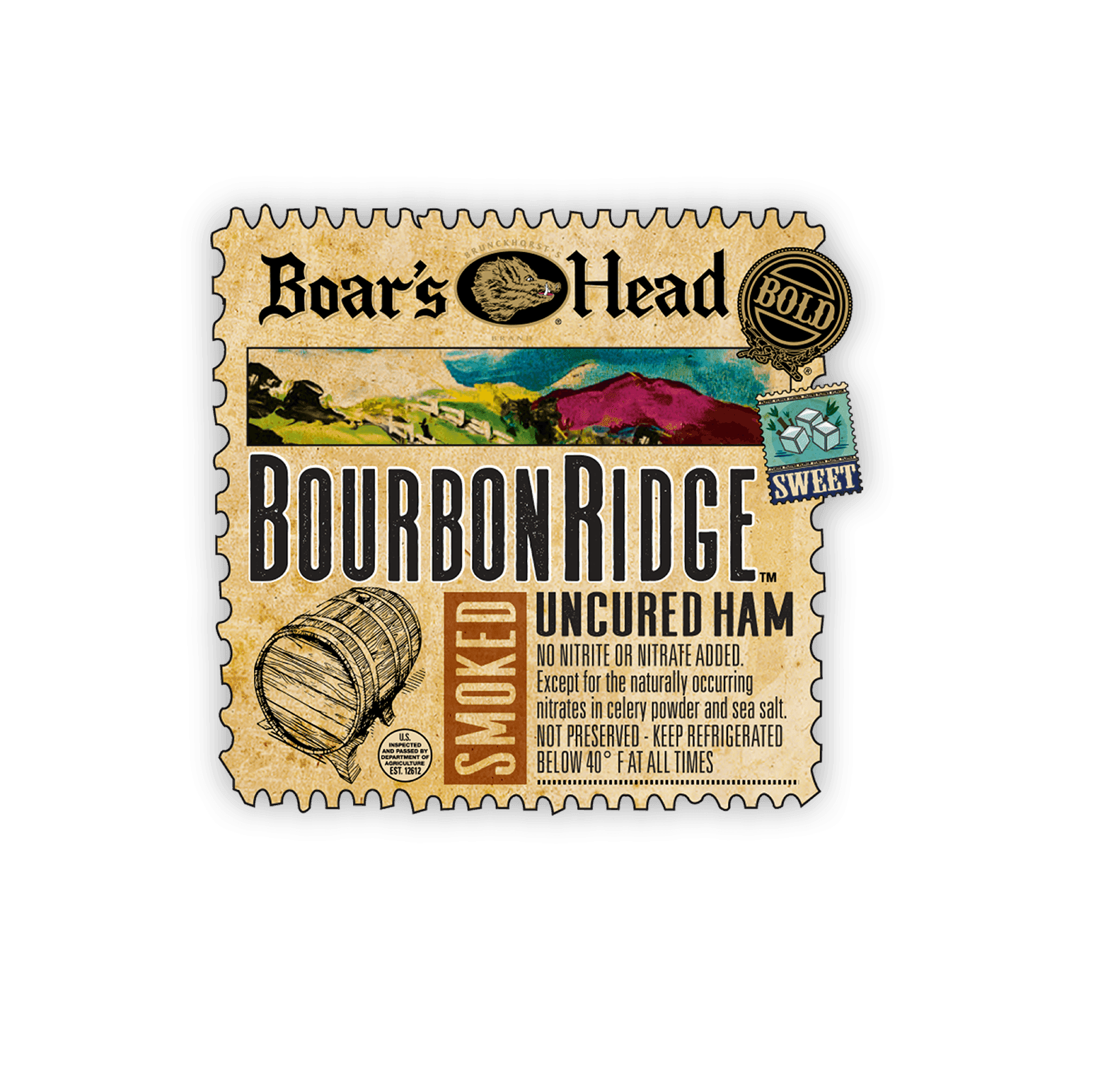 Inspirado en las ricas tradiciones nacidas en las ondulantes colinas y los recónditos canales de Kentucky, Bold BourbonRidge® Uncured Smoked Ham encarna el espíritu epicúreo americano y captura la sofisticación de los majestuosos purasangres por los que es conocida esta región. Elaborado con maestría con un refinado bourbon y ahumado pacientemente con virutas de barril de bourbon de roble carbonizado recuperado, cada rodaja celebra la herencia y el orgullo del estado de bluegrass.