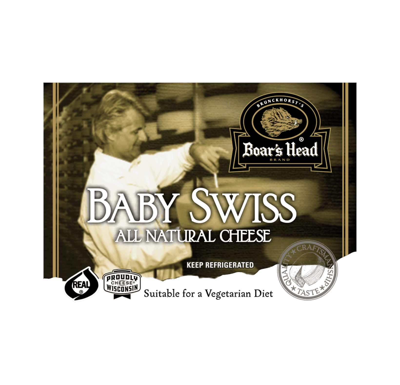 Cada horma de este sabroso queso, una versión americana de un clásico suizo, se elabora en Wisconsin con leche entera para producir un sabor suave con un toque de dulzura. El queso Boar's Head® Baby Swiss Cheese se madura hasta la perfección para obtener una textura más suave y cremosa que su inspiración del viejo mundo.