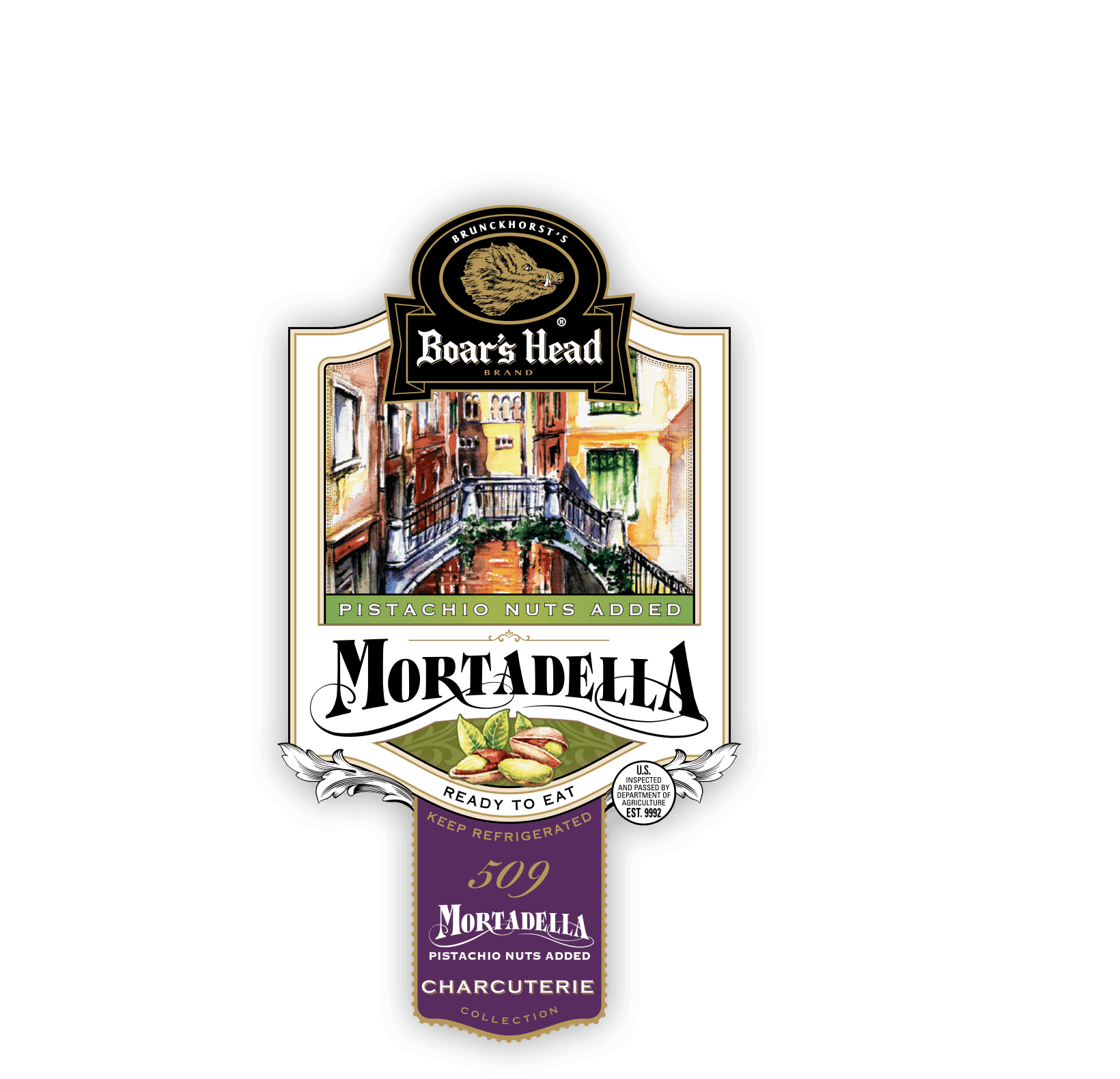 La Boar’s Head® Mortadella se elabora con una receta veneciana de larga tradición. Los cortes seleccionados de cerdo se acentúan con pistachos, ajo y especias, y luego se asan delicadamente a la manera italiana del viejo mundo.