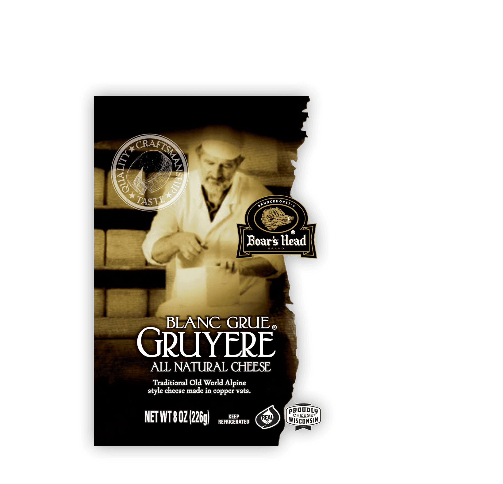 Prepared in copper vats and aged in the traditional Alpine manner, this earthy, aromatic cheese has a firm texture and lush flavor. Boar’s Head® Blanc Grue® Gruyere Cheese is made with milk from small family farms in Wisconsin.
