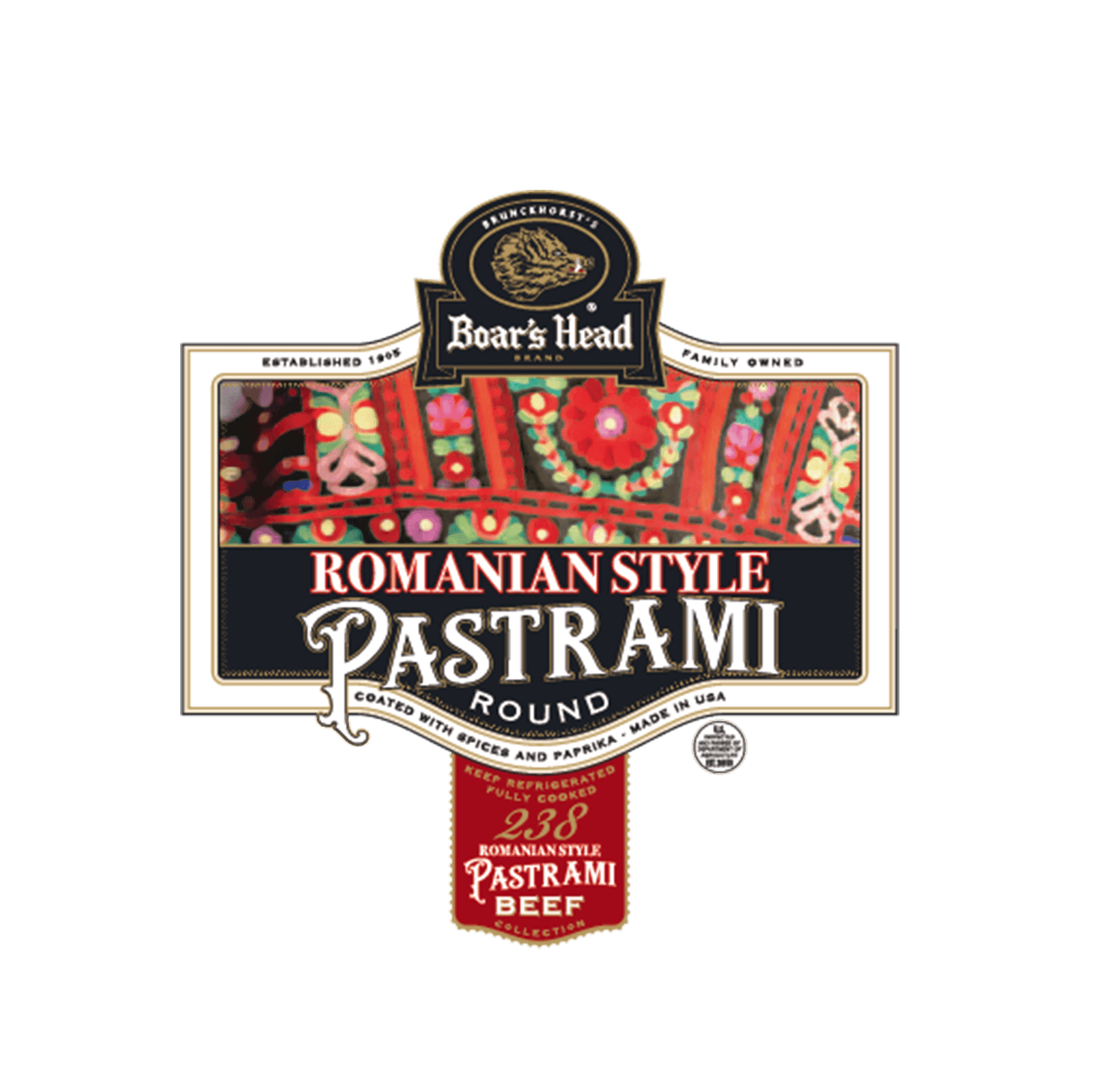 Boar’s Head® Romanian Style Pastrami delivers a complex flavor profile as it contains a variety of spices and aromatics. The beef is hand-trimmed, coated with spices and paprika, cured and expertly smoked for a classic Romanian pastrami flavor.