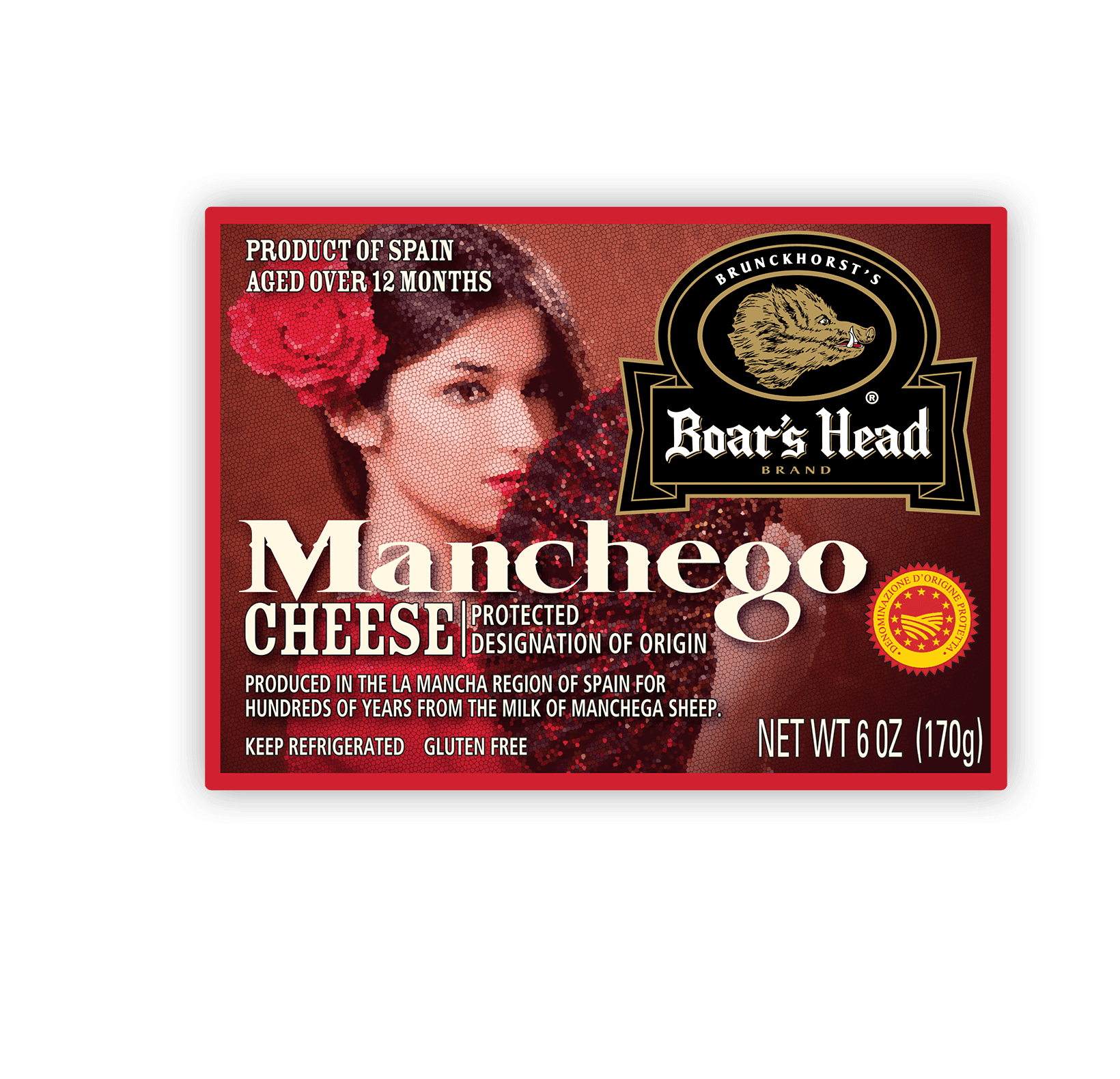 With a firm, slightly granular consistency and complex flavor that evokes Spain’s windswept La Mancha region, Boar’s Head® Manchego Cheese is a flavorful cheese that is crafted in the Old World style from sheep’s milk and aged over 12 months. Imported from Spain, this cheese has a subtly sharp, intense flavor with a clean, pleasant finish.