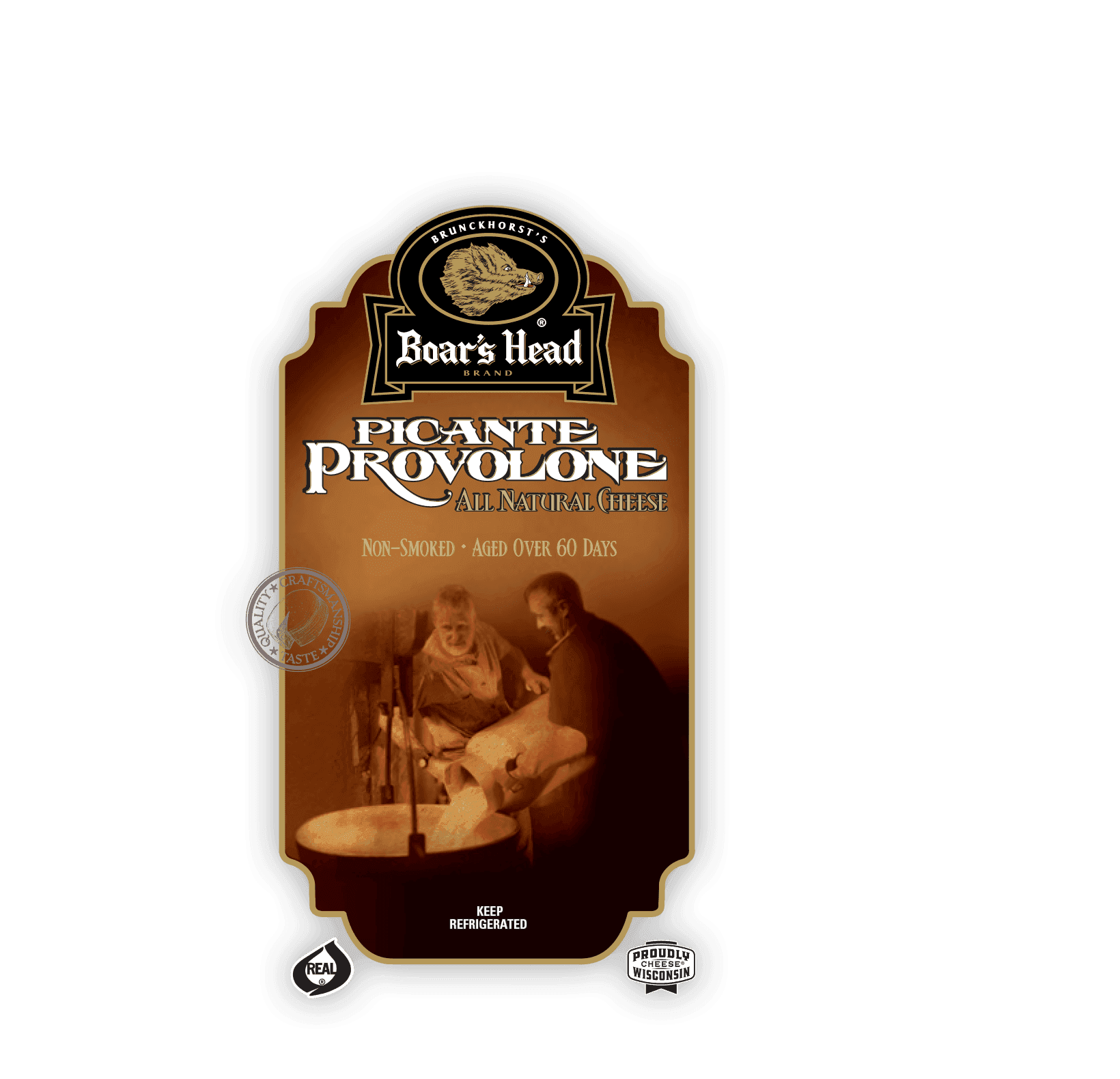 Made in the Old World manner, this versatile cheese has a distinctly sharp taste. Boar's Head® Picante Provolone Cheese is aged more than 5 months to produce a full-bodied flavor and smooth, creamy texture.