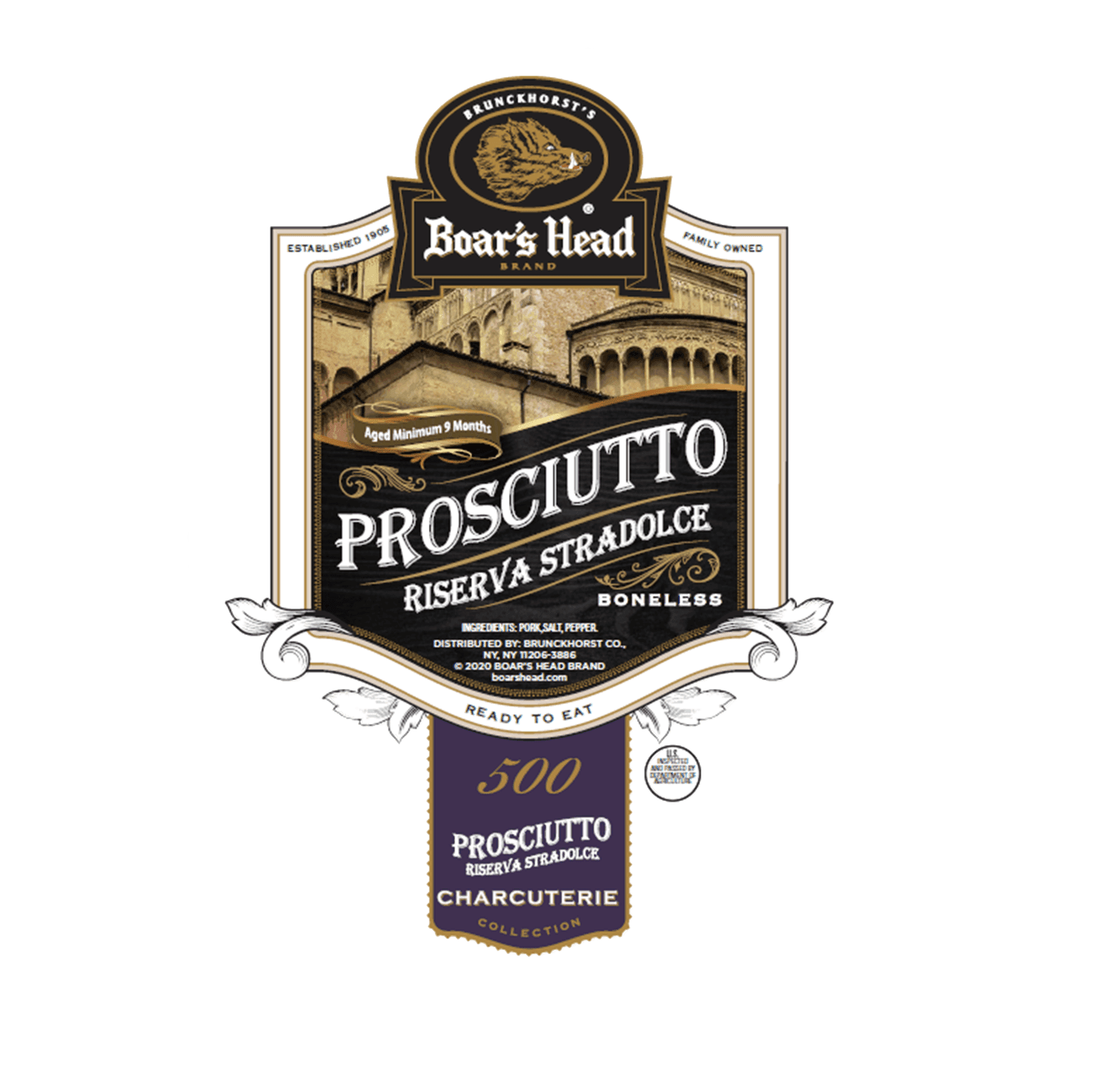 Boar’s Head® Prosciutto Riserva Stradolce is a classic Italian-style delicacy made with simple ingredients including fresh ham, salt, air, and time. Boneless but with the skin and shank on, this product pays homage to the time-honored traditions that have been maintained and handed down through generations to craft the finest Prosciutto available. Our Prosciutto Riserva Stradolce is placed in our aging rooms for natural drying under exacting temperature and humidity levels for over 9 months to ensure that each slice delivers a luxurious texture and sensationally rich flavor, while following authentic Italian procedures.