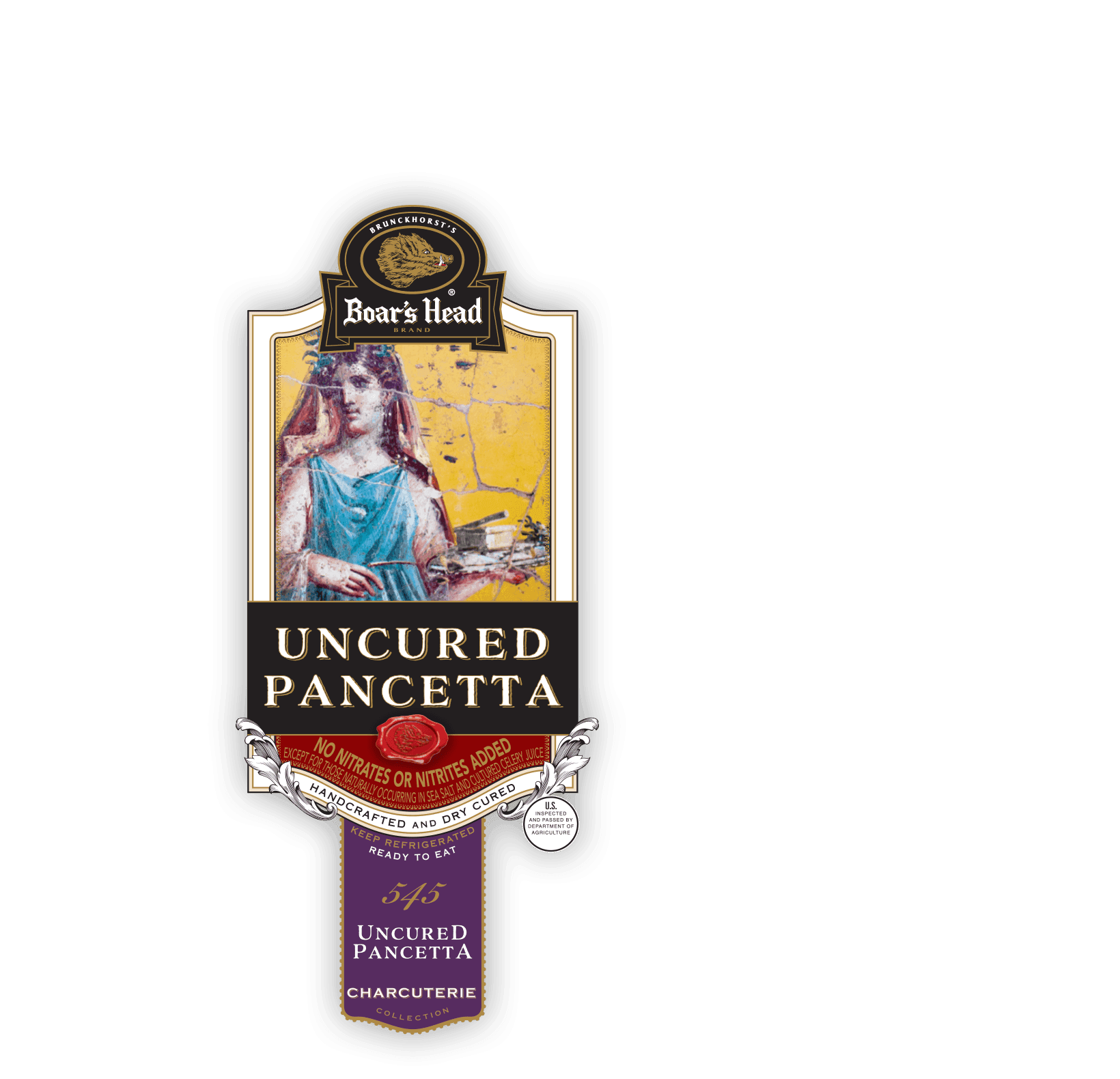 An Italian-style cured specialty, Boar's Head Pancetta is hand-rubbed with salt, peppercorns and aromatic spices then tightly rolled and dry cured.