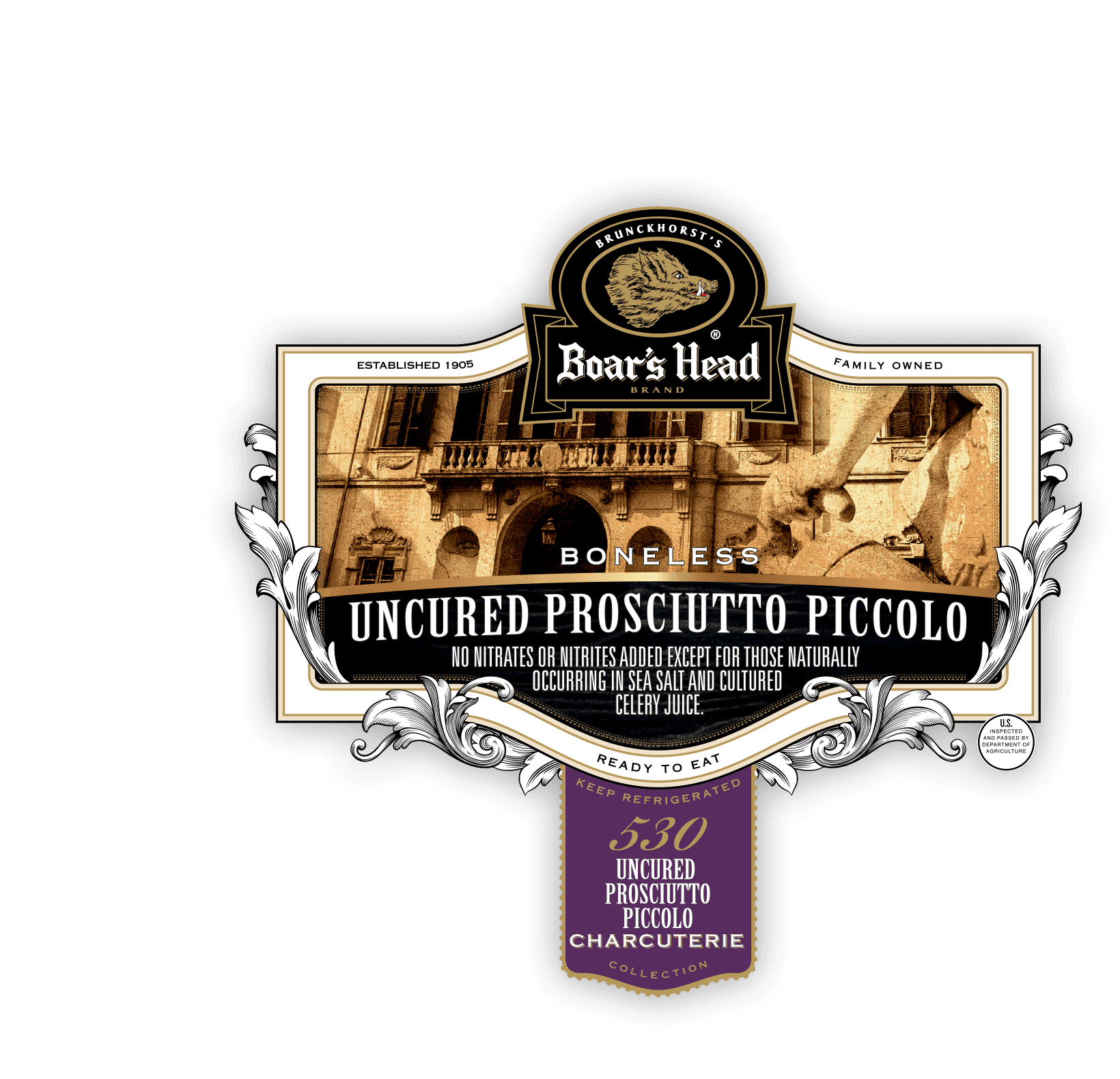 A domestic dry cured specialty with an Italian heritage, Boar's Head Uncured Prosciutto Piccolo has a velvety smooth texture that melts in the mouth.