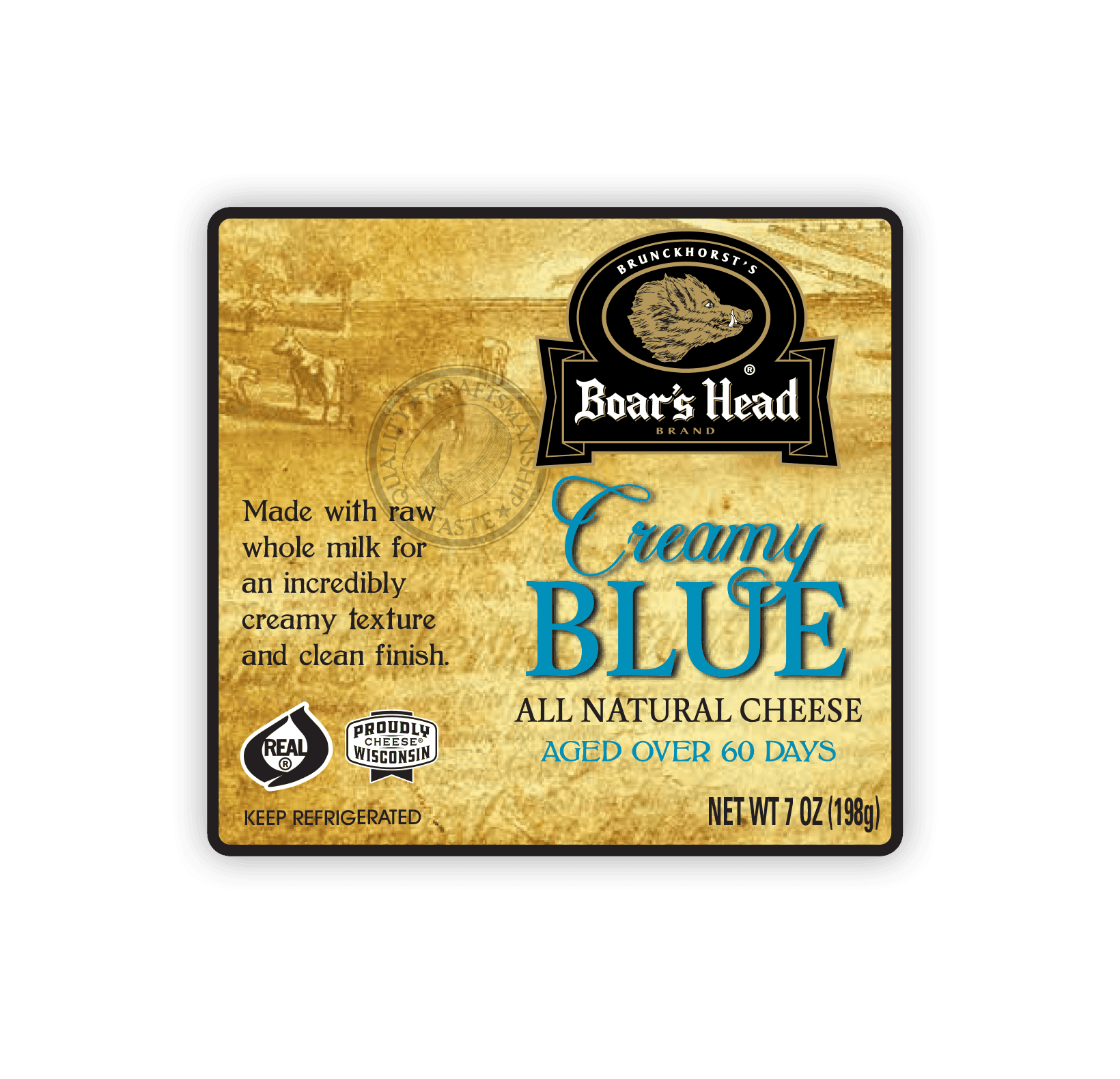 A younger blue that is less pungent and more nuanced than traditional varieties, this cheese has an extra creamy texture, complex flavor and clean finish. Each wheel of Boar's Head® Creamy Blue Cheese is made with raw milk for a tangy yet subtle taste.